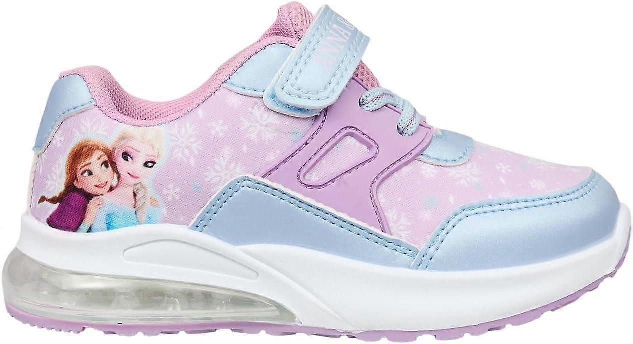 OFFICIALLY LICENSED DISNEY FROZEN DESIGN:Officially licensed Disney Frozen trainers featuring beloved characters Anna and Elsa, making them perfect for young fans. The enchanting snowflake print and character artwork create a magical look inspired by Frozen, ideal for everyday wear, playtime, or themed occasions, while offering an authentic design parents can trust.COMFORTABLE EVERYDAY WEAR:Designed with growing feet in mind, these trainers offer a cushioned sole and soft textile upper to support comfortable all-day wear. The padded ankle collar and breathable materials help keep feet feeling comfortable during school, outdoor play, or casual outings without compromising on style or movement.EASY TOUCH FASTENING AND LACES:Practical touch fastening strap combined with elastic-style laces allows for quick and easy on-and-off wear. This child-friendly design supports independence while ensuring a secure fit, making these trainers ideal for busy mornings, school routines, or active days where comfort and convenience matter most.DURABLE SYNTHETIC SOLE WITH LIGHTS:The sturdy synthetic sole is designed for everyday durability and grip, suitable for a variety of surfaces. Integrated light-up detailing in the sole adds fun and excitement with each step, enhancing visibility and enjoyment while walking or running, making every step feel extra special.PERFECT GIFT AND SIZE RANGE:Available in childrens UK shoe sizes 6 to 12, these Frozen trainers make a thoughtful gift for birthdays, holidays, or special surprises. The pastel colour palette complements a range of outfits, making them a versatile footwear choice for Frozen fans who love comfort, style, and fun footwear.