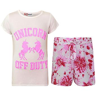 Kids Girls Shorts Set Unicorn Off Duty Summer Outfit Fashion Top & Short 7-13 Yr