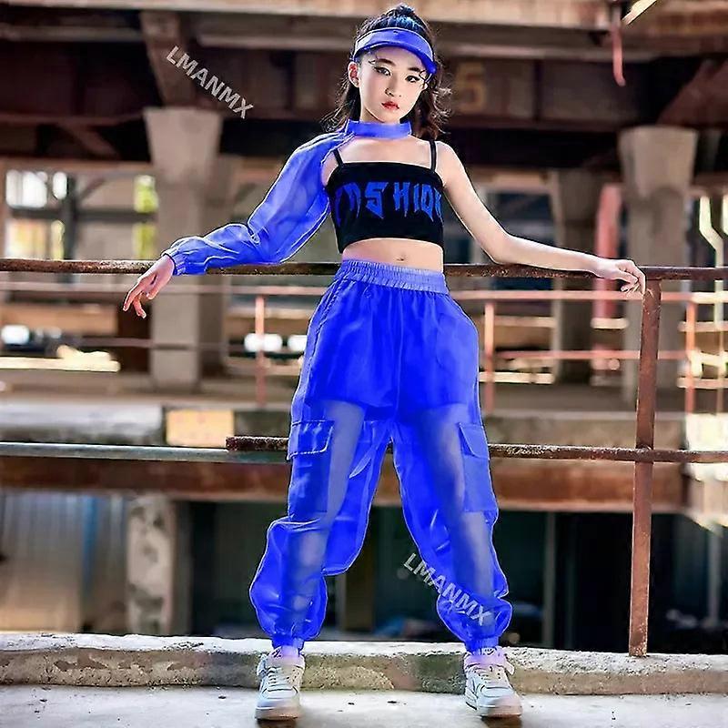 Kids Hip Hop Dance Outfit: Green Single Sleeve Crop Top & Mesh Pants For Jazz