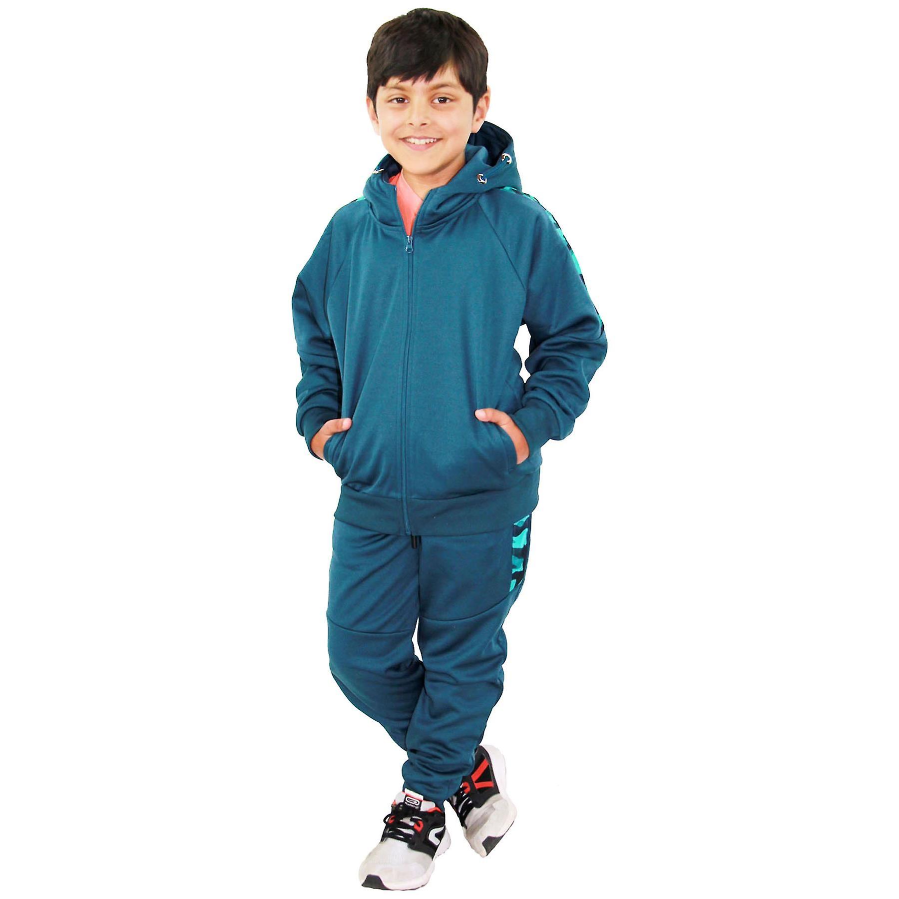 Kids Unisex Camouflage Panelled Teal Jogging Suit