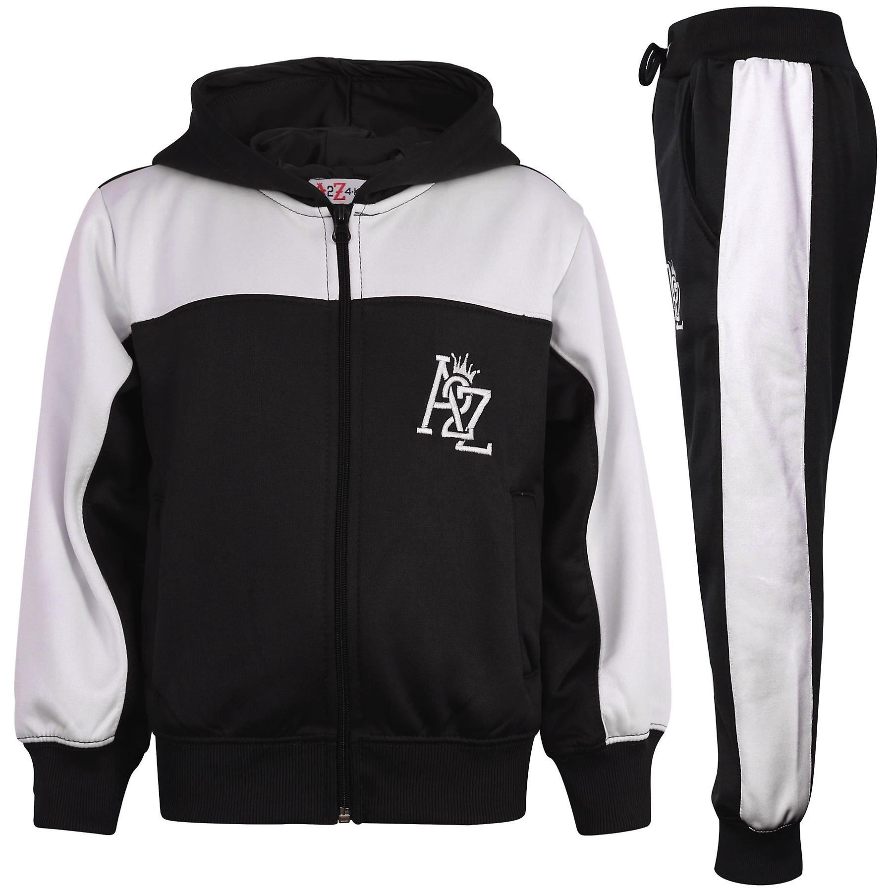 Kids Unisex Contrast Panelled A2Z Embroidered Black Tracksuit