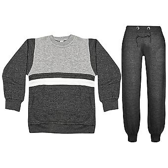 Kids Unisex Contrast Panelled Charcoal Jogging Suit