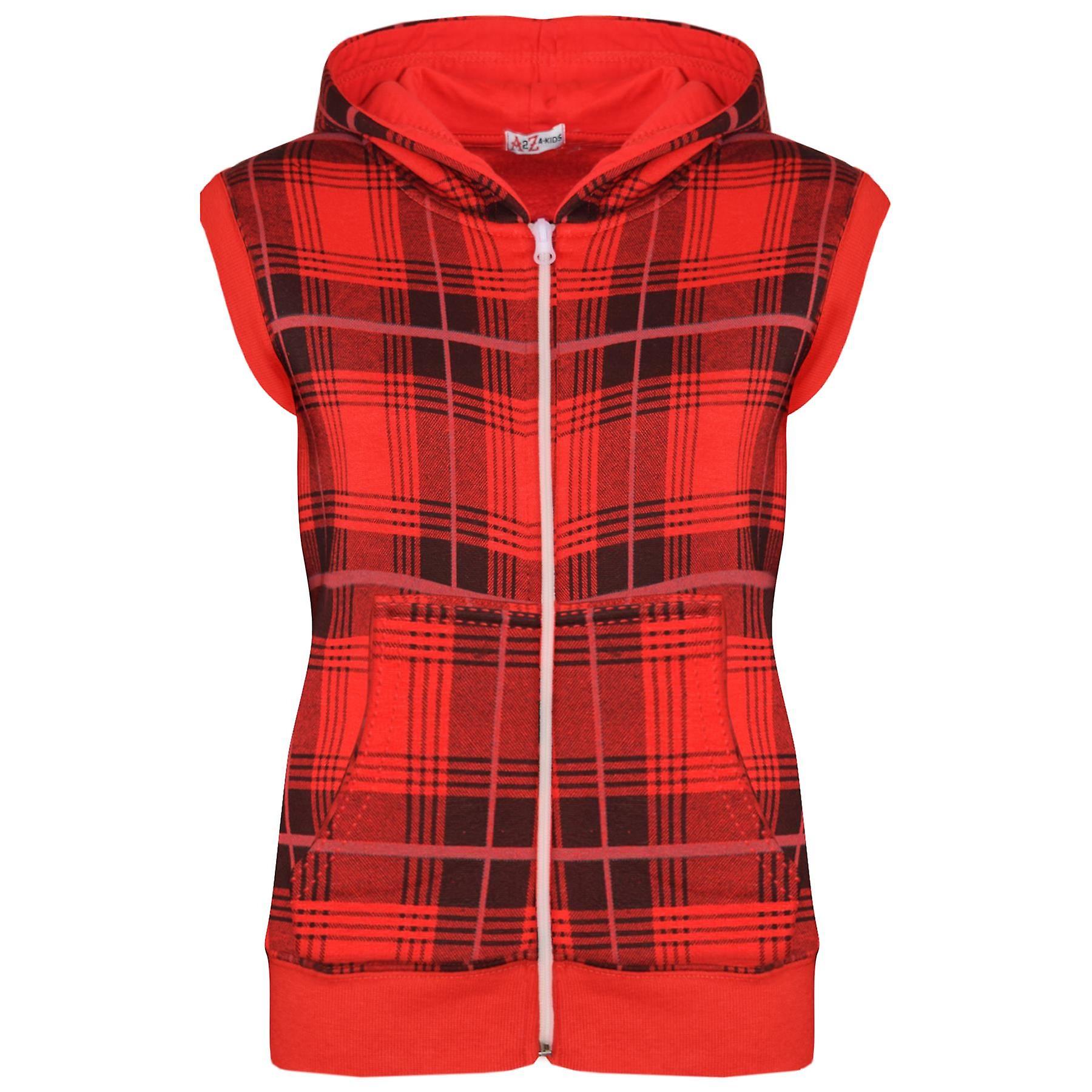 Kids Unisex Plain Red Tartan Hoodie Sleeveless Gilet