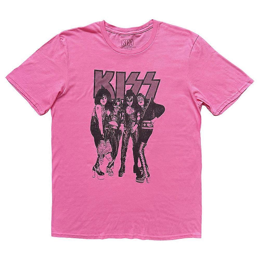 An official licensed KISS T-Shirt featuring the Dressed To Kill design motif. This high quality unisex tee is available in pink colorway. Comes in a wide range of sizes from Small through XX-Large, subject to availability.