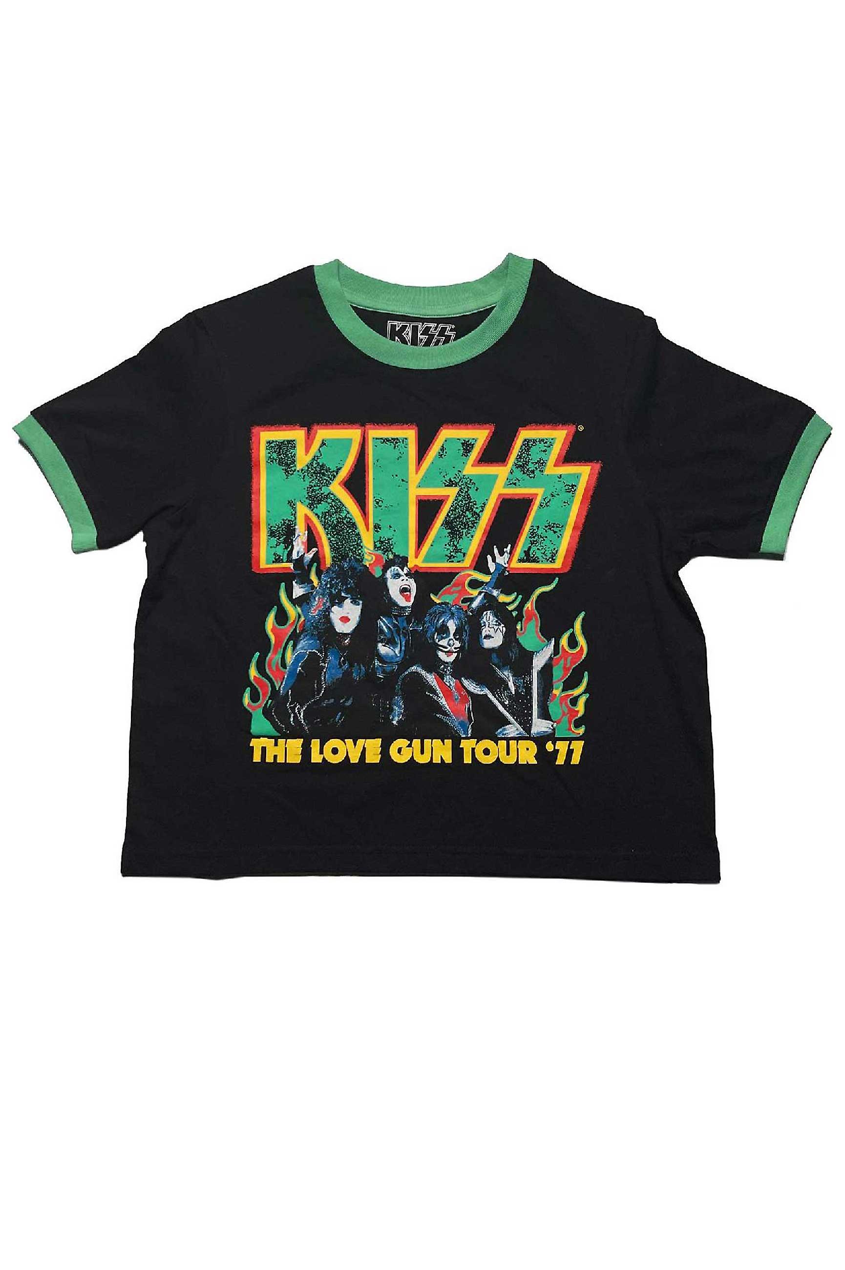 An official licensed KISS Ladies Crop Top featuring the 'St Paddy's Ringer' design motif. This high quality Crop Top is available in a black colourway. Stunning cropped top soft-style cotton tee with short sleeves and crew neck. Front Printing. Features ringer styling with contrasting colours of green and black to neck and sleeve edging. Machine Wash Cold. Do Not Bleach. Dry Low. Do Not Iron Decoration. Comes in a wide range of sizes from Small through XX-Large, subject to availability.