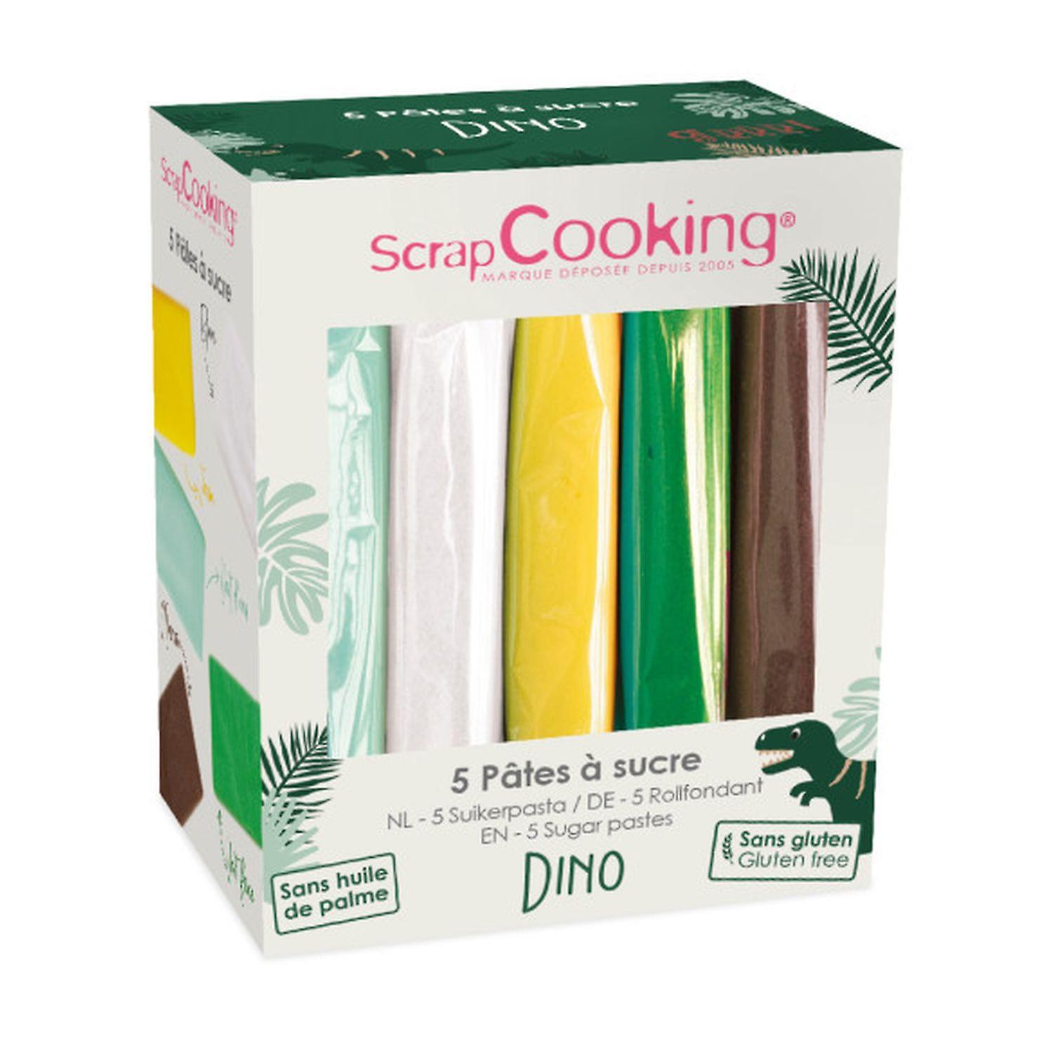 Kit of 5 Fondants - Water Green Dinosaur, White, Yellow, Dark Green, Brown