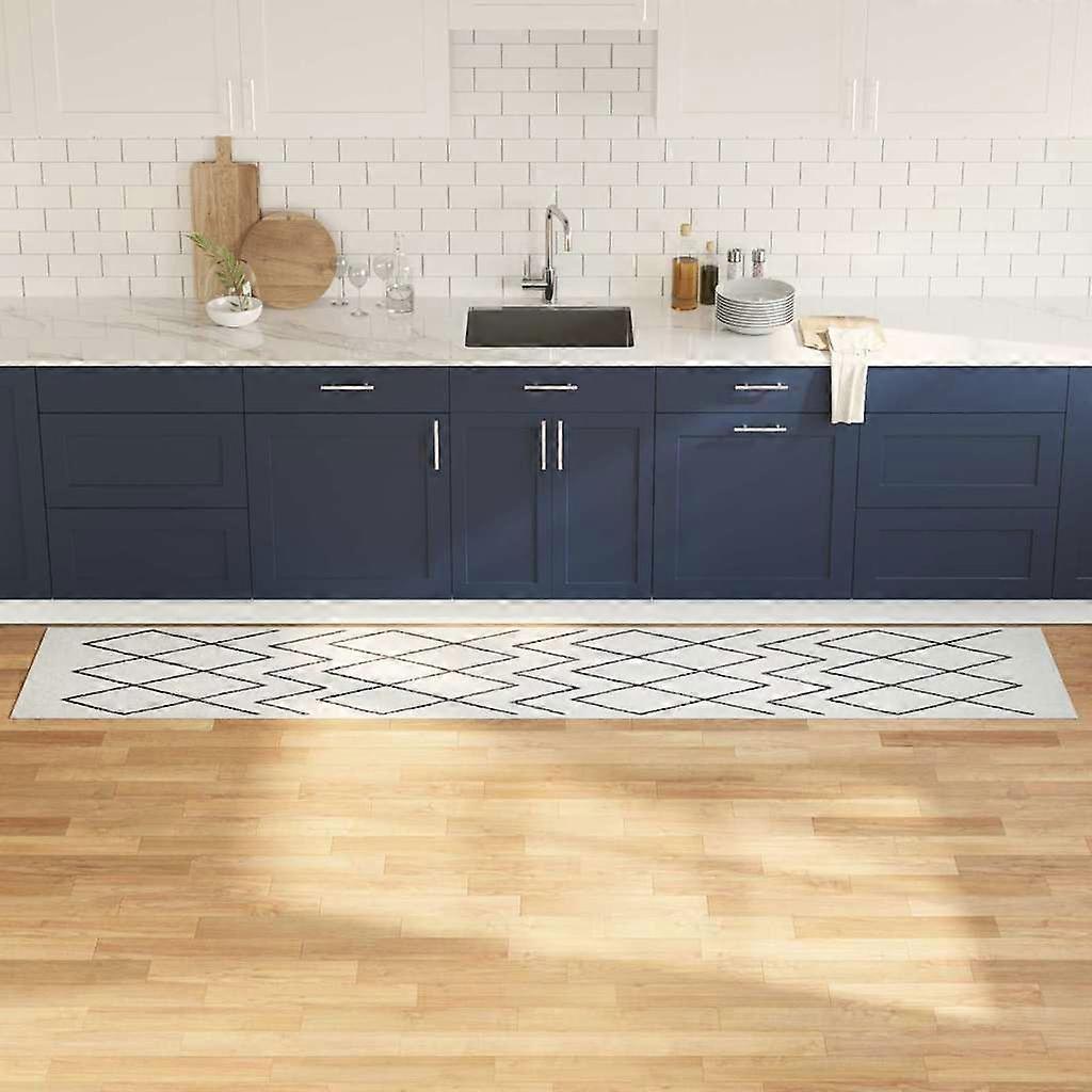 Farbe: WeißMaterial: SamtGesamtabmessungen: 300 x 60 cm (L x B)Pile Height: 4 mmDicke: 5 mmTotal Weight: 1180 g/m²Tuft Density: 205 g/m²RechtwinkligRutschfeste GestaltungNimmt Wasser und Schmutz schnell auf, schnell trocknendWeiche samtige Oberfläche für KomfortMaschinenwaschbarInnen- / Außenbereich: Nur für den InnenbereichLieferumfang:1 x Küchenteppich