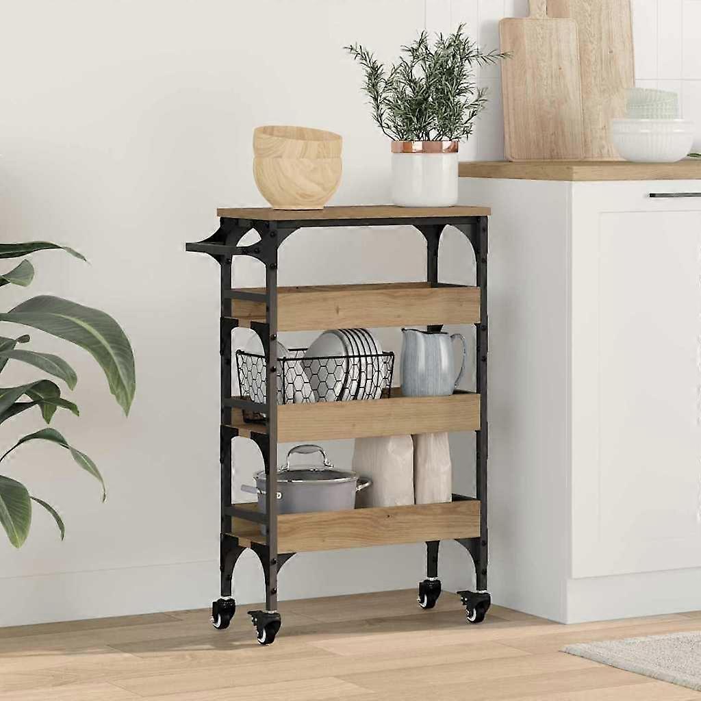 Farbe: Artisan-EicheMaterial: HolzwerkstoffGesamtabmessungen: 53 x 20 x 76 cm (B x T x H)Gewicht: 4,2 kgLanglebigRäder/RollenInnen- / Außenbereich: Nur für den InnenbereichLieferumfang:1 x KüchentrolleyMontage erforderlich: Ja
