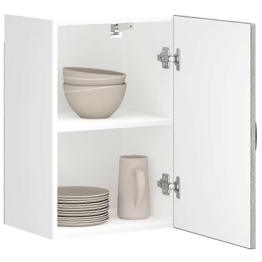 Dieser Hängeschrank optimiert deinen Küchenraum und bietet ausreichend Stauraum für deine Sachen Starkes und langlebiges Material: Holzwerkstoff ist ein langlebiges und robustes Material mit einer glatten Oberfläche, das gegen Feuchtigkeit, Verformung und Rissbildung beständig ist, wodurch es eine zuverlässigen Wahl für die Herstellung von Möbeln ist.Viel Stauraum: Der Wandschrank bietet reichlich Stauraum für Schüssel, Teller, Töpfe und andere Küchengeräte.Praktische Türen: Hinter den Türen kannst du Küchengeräte verstauen, und so einen sauberen und aufgeräumten Raum genießen.Pflegeleicht: Dank seiner glatten Oberfläche lässt sich der Küchen-Hängeschrank mit einem feuchten Tuch leicht reinigen und erfordert wenig Pflege.Vielseitig einsetzbar: Dieser Schrank ist vielseitig einsetzbar und eignet sich für deine Bedürfnisse in Schlafzimmern, Wohnzimmern, Fluren und so weiter. Achtung:Um das Umkippen zu verhindern, muss dieses Produkt mit der mitgelieferten Wandhalterung gesichert werden. Gut zu wissen:Schrauben und Dübel für die Wandbefestigung sind nicht enthalten. Suchen und verwenden Sie die für Ihre Wände geeigneten Schrauben und Dübel. Wenn Sie unsicher sind, suchen Sie professionelle Hilfe. Lesen und befolgen Sie jeden Schritt der Anleitung sorgfältig. Farbe: Grau SonomaMaterial: HolzwerkstoffGesamtabmessungen: 40 x 31 x 60 cm (B x T x H)Maße je Regalboden: 37 x 29,5 x 37,5 cm (B x T x H)Maximale Tragfähigkeit (insgesamt): 50 kgProduktreihe: KalmarZusammenbau erforderlich: Ja
