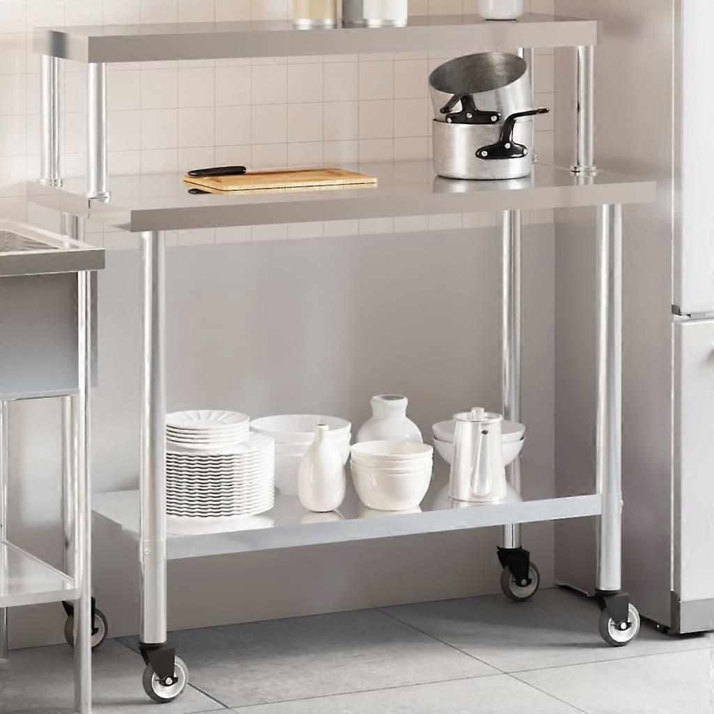 Küchen-Arbeitstisch mit Aufsatzboard 110x55x120 cm Edelstahl