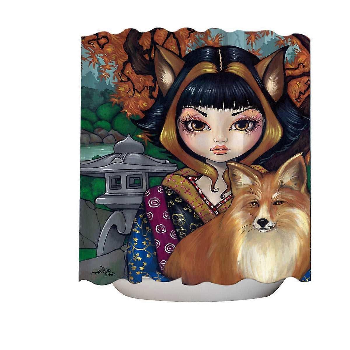 KitSune Japanese Fantasy Art Fox Girl and Fox Shower Curtain