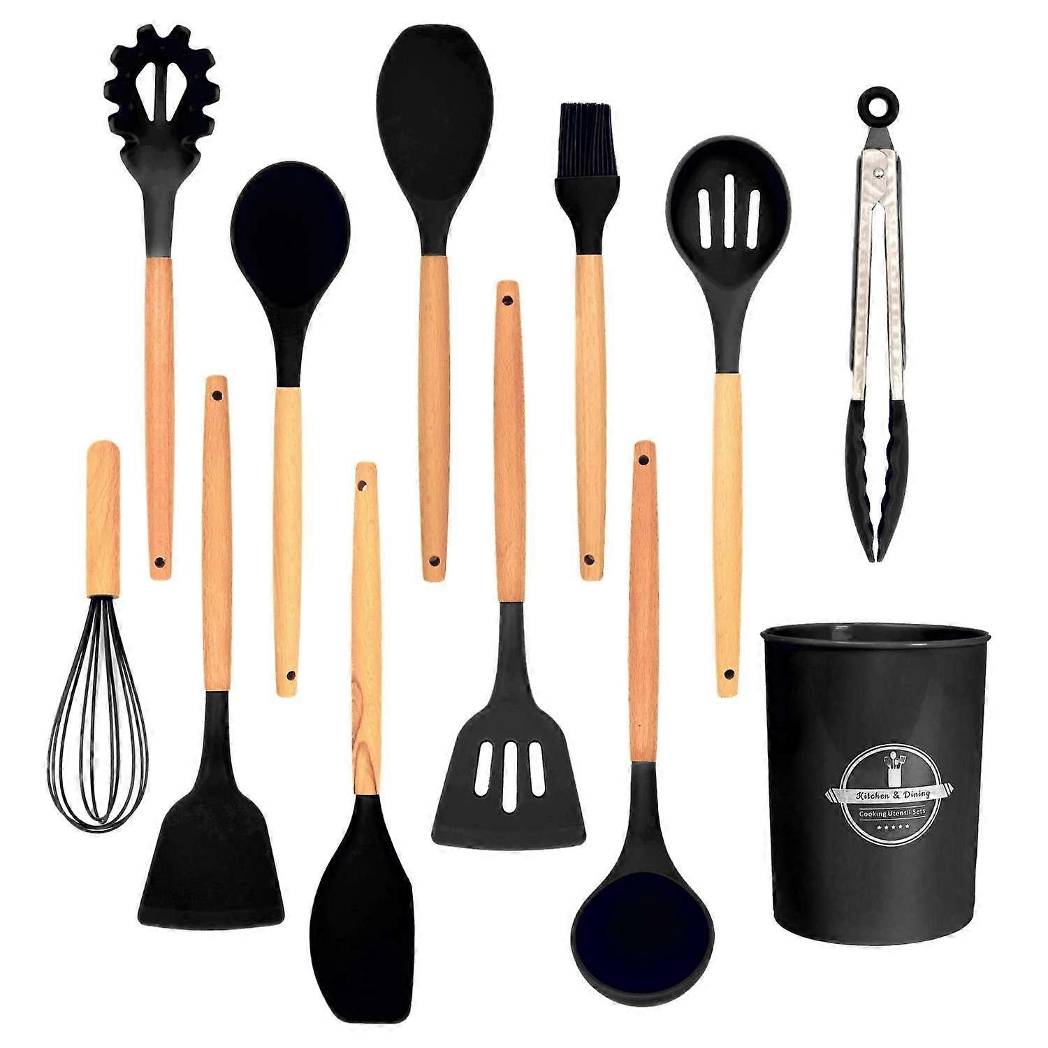 Küchenutensilien Set Küchenhelfer Silikon Kochbesteck mit Zange Schneebesen Pfannenwender Pinsel Schöpfkelle (12-tlg.)