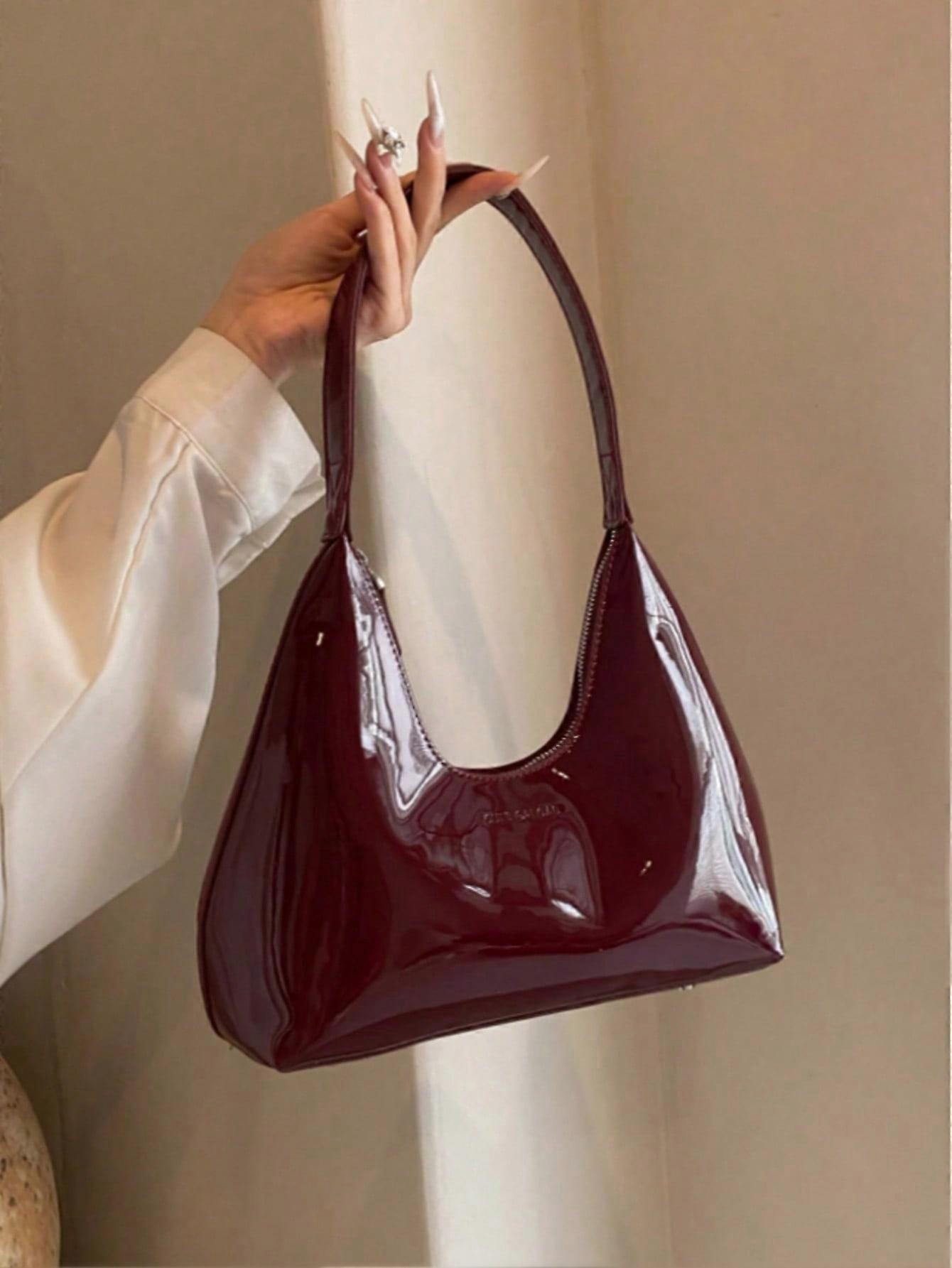 Korean Style Niche Red Lacquer Leather Crescent Shoulder Bag, Ladies Handbag, Stylish Underarm Bag, Good Quality