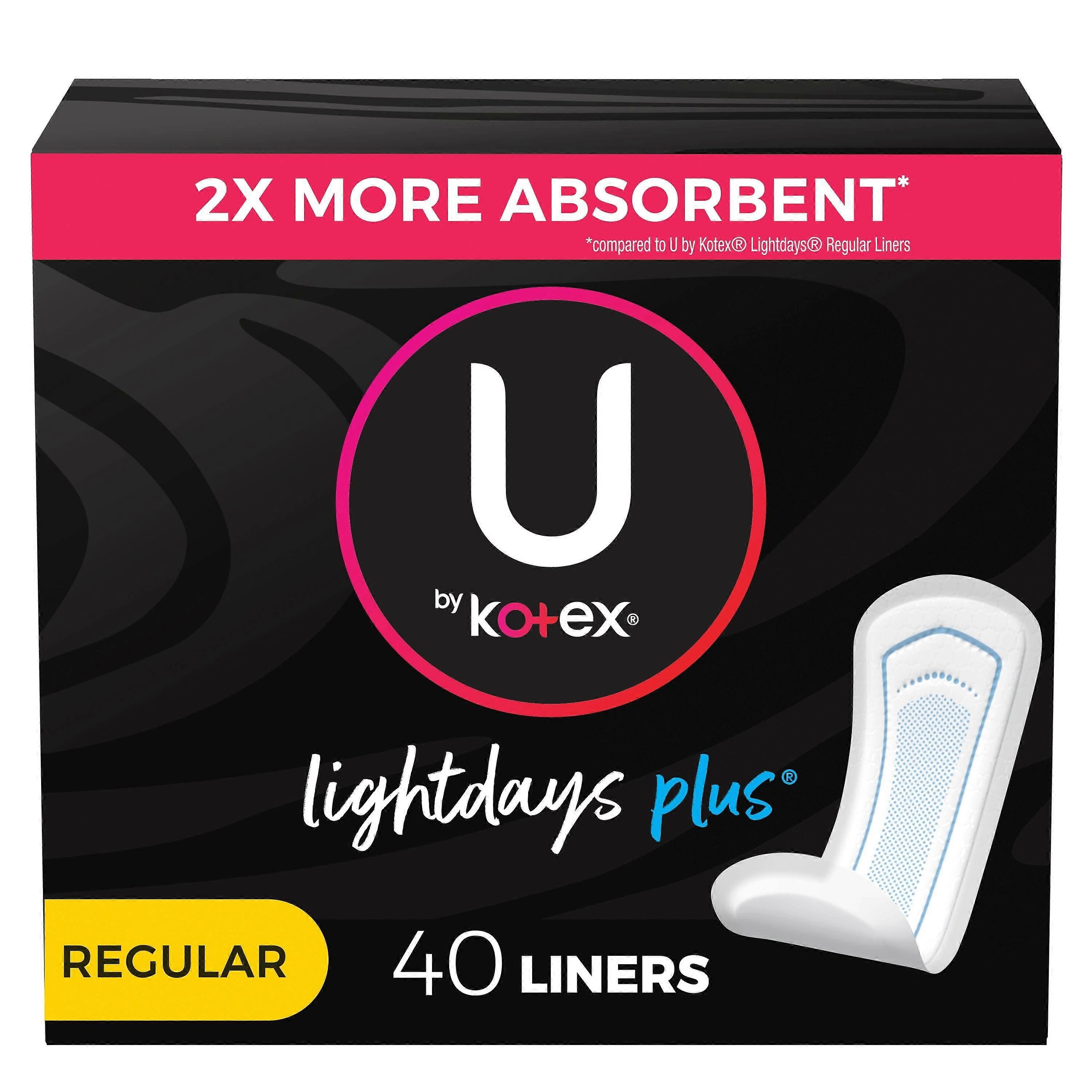Kotex U Lightdays Plus Panty Liners, Regular Length, Unscented, 40 Ea