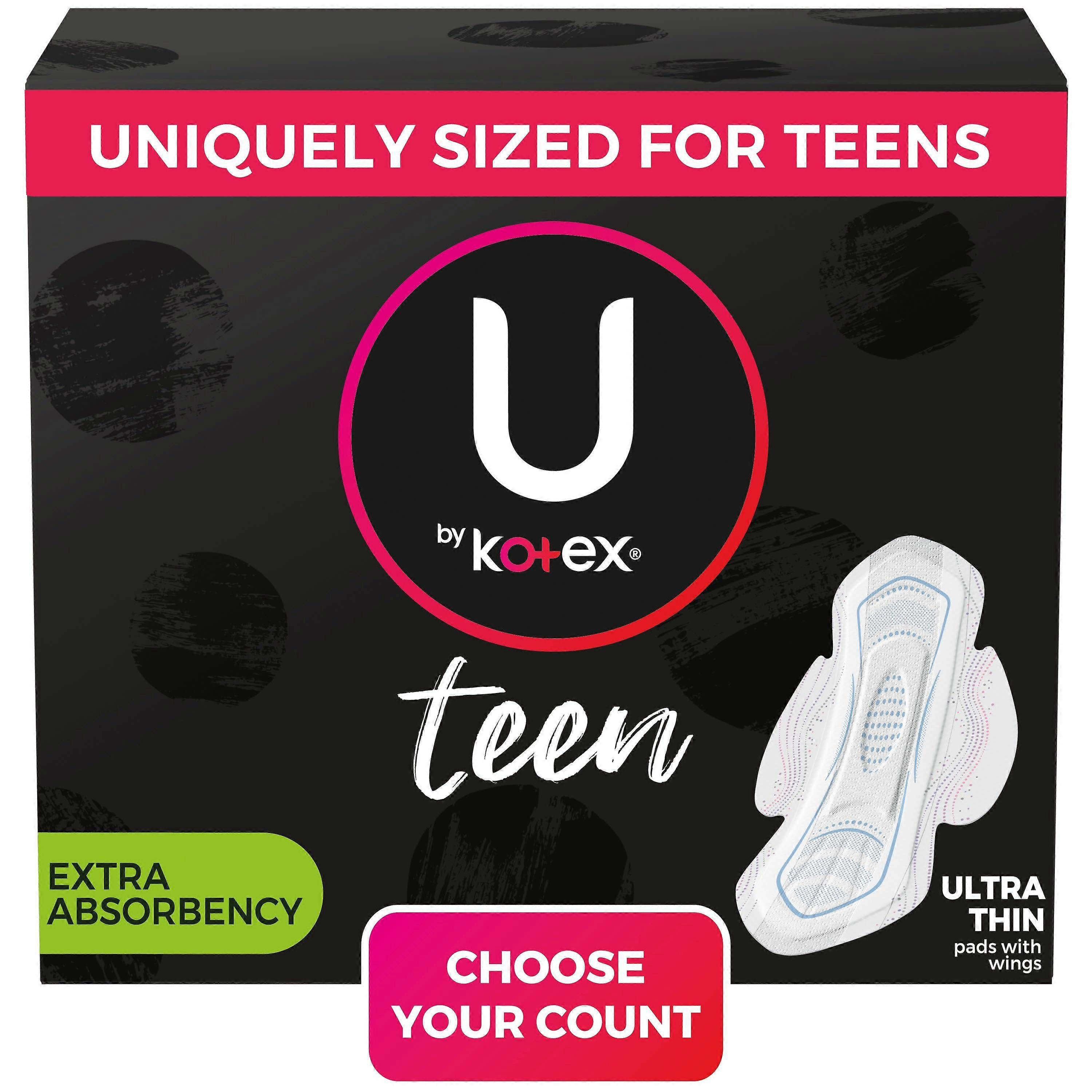 Kotex U Teen Ultra Thin Feminine Pads With Wings, Extra Absorbency, Unscented, 28 Ea