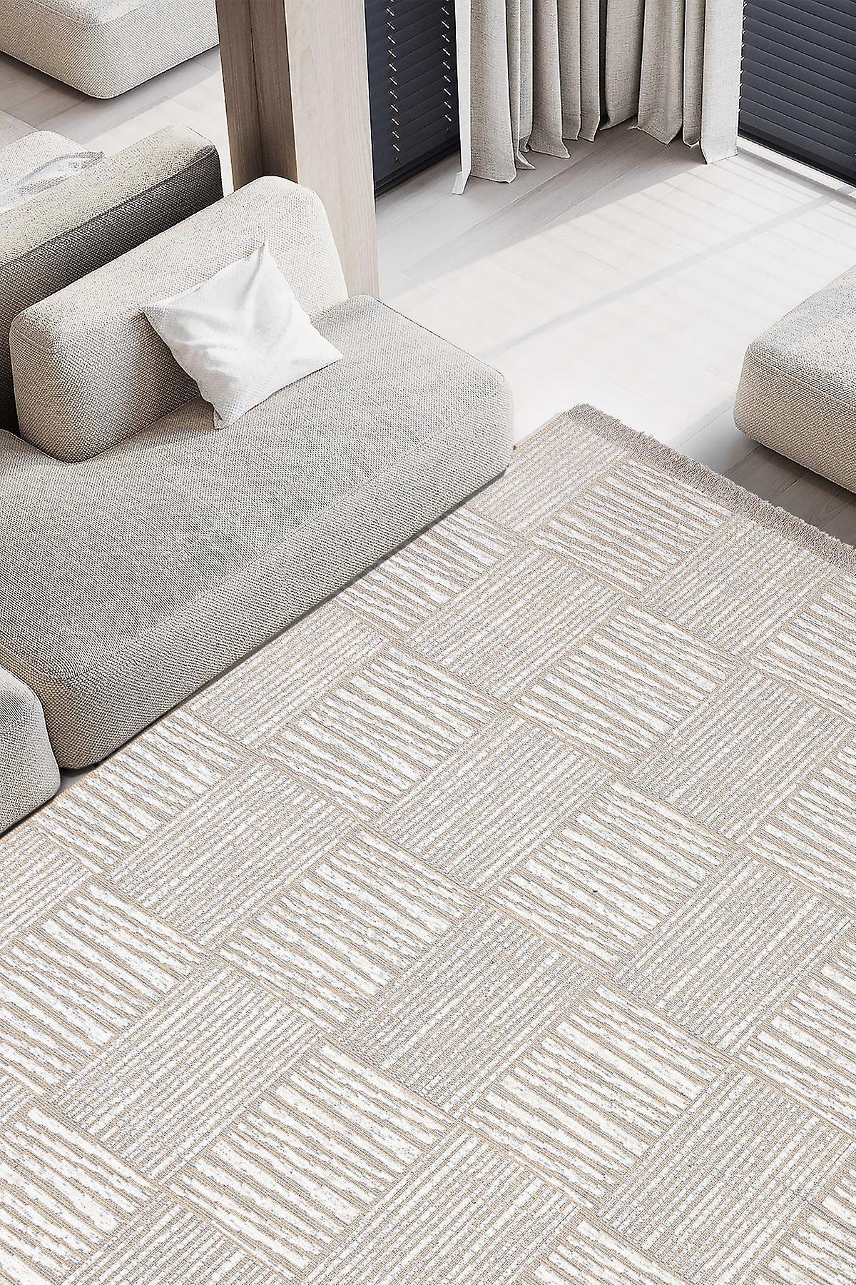 Koza Home Rosso Cream Woven Carpet Sisal Carpet Jute Carpet 23043A, Jute Kilim for Living Room Bedroom Hallway Rug, Sisal Rug, Modern Design Rug