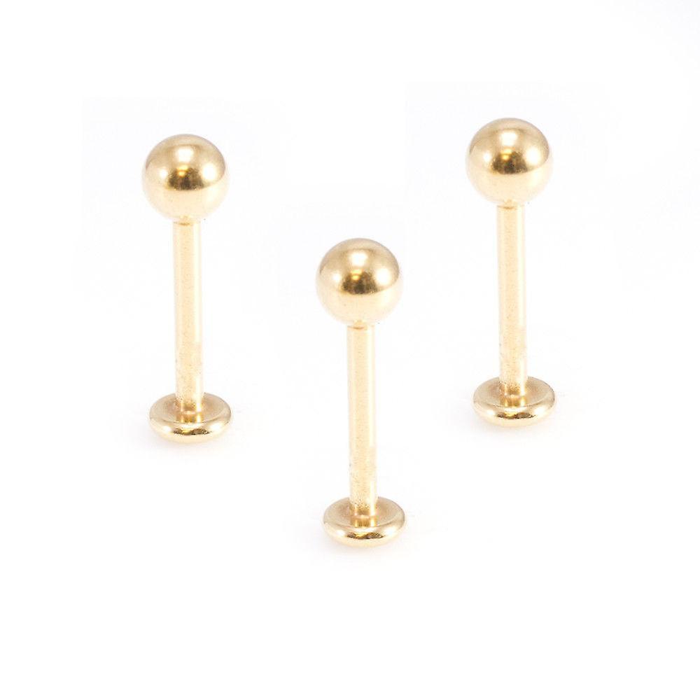 Labret monroe stud jewelry pack of 3 surgical steel 14g matte gold ip coated