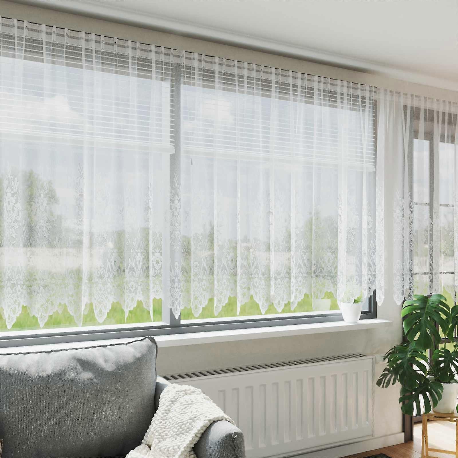 Farbe: WeißMaterial: PolyesterGesamtabmessungen: 140 x 900 cm (L x B)Gewicht: 0,88 kgLanglebigLeichtes Gewicht4 Installationsmethoden: kleine Haken, große Haken, Tabs, StangentascheInnen- / Außenbereich: Nur für den InnenbereichLieferumfang:1 x SpitzenvorhangMontage erforderlich: Ja