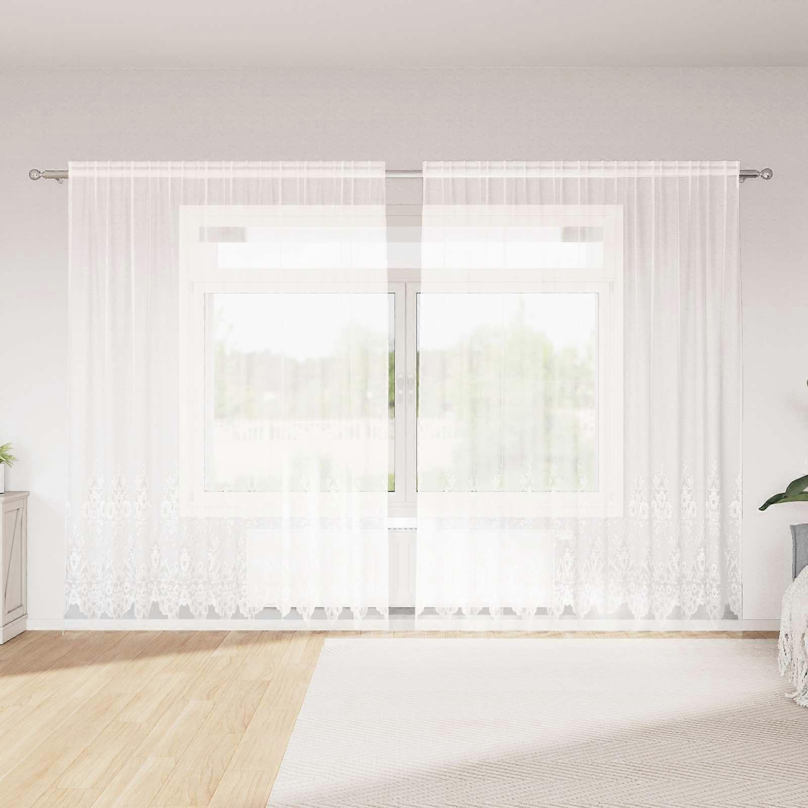 Spitzenvorhang mit Vorhängen Floral Weiß 240 x 300 cm Polyester