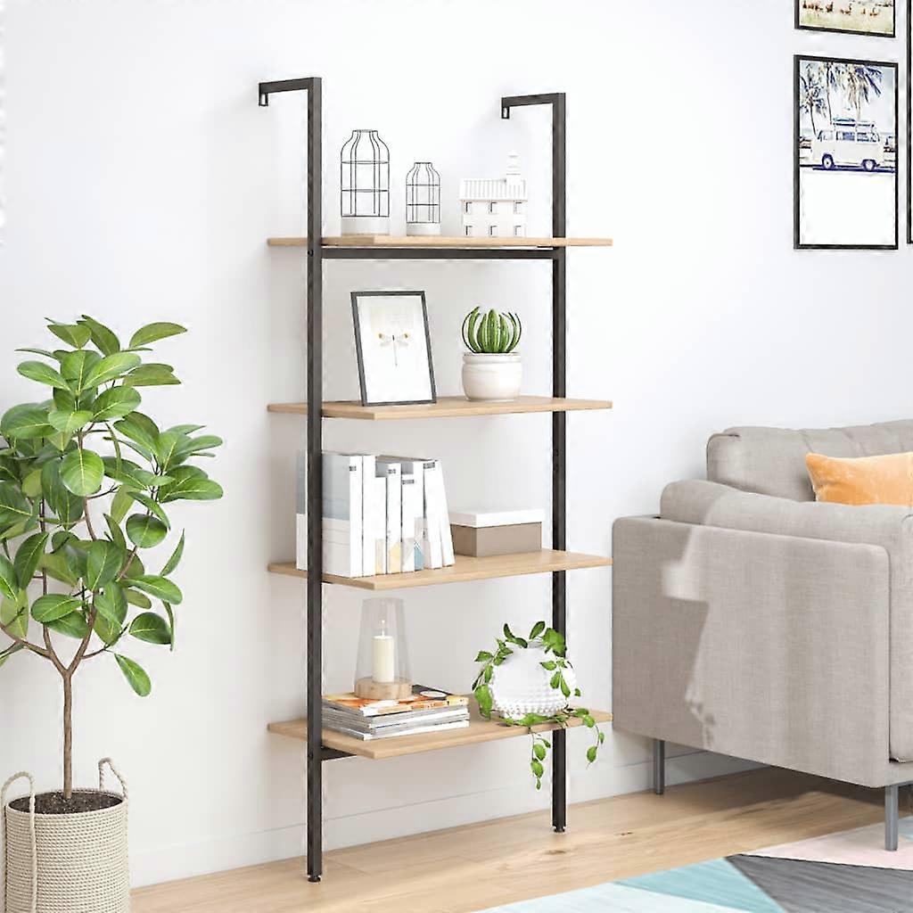 Leiterregal mit 4 Böden Hellbraun und Schwarz 64x35x152,5 cm