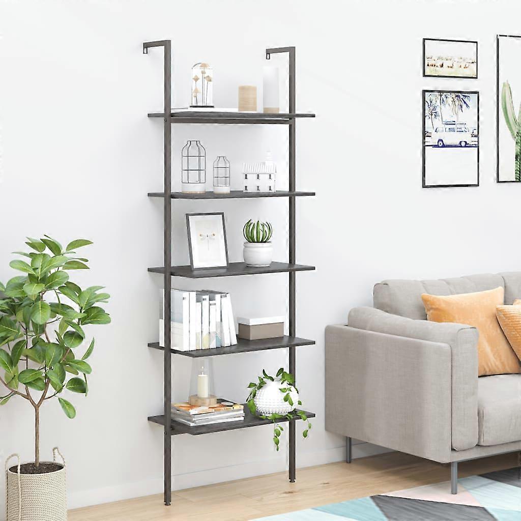 Leiterregal mit 5 Böden Schwarz 64x35x185 cm