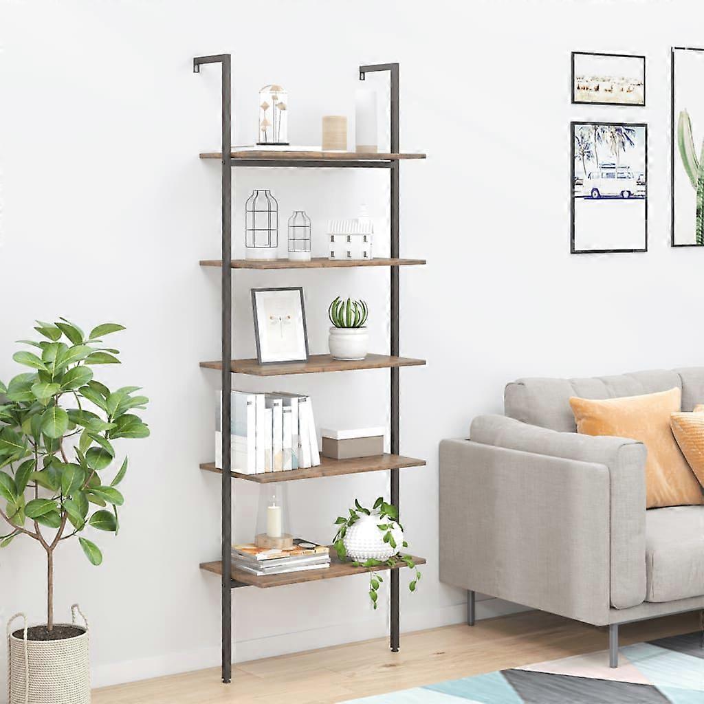 Leiterregal mit 5 Böden Dunkelbraun und Schwarz 64x35x185 cm