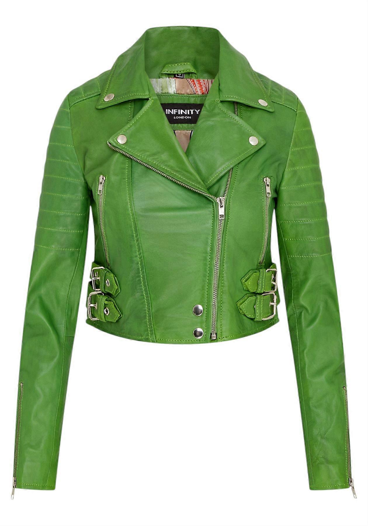 Ladies Cropped Jacket Short Body Gothic Top Apple Green Chic Biker Real Leather Jacket