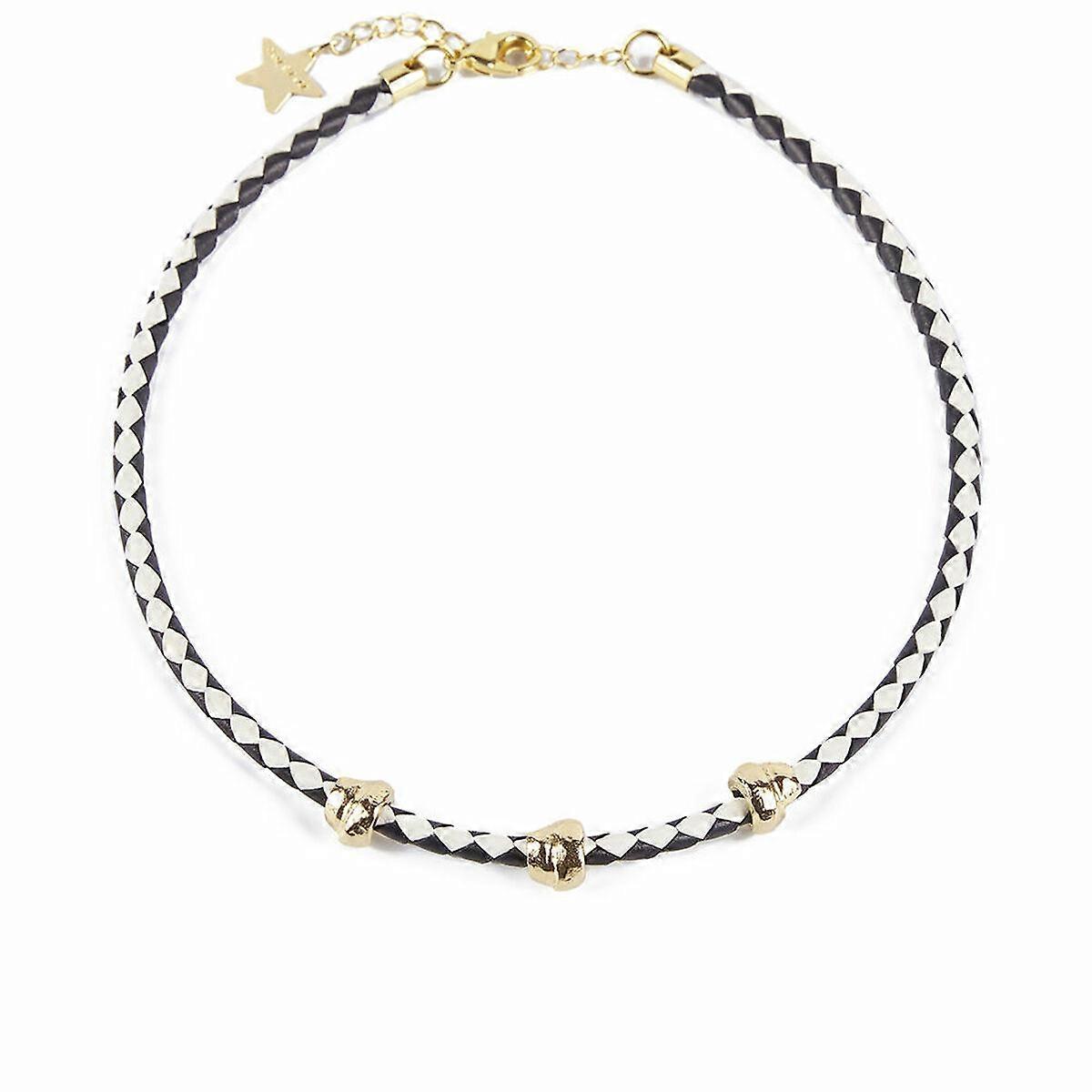 Ladies' Necklace Shabama Namibia Brass gold-plated Leather 38 cm Set 3 Pieces