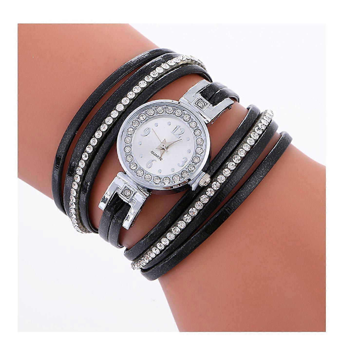 Ladies Silver Watch Women Woman Smart Watches Double Black Jewellery Strap