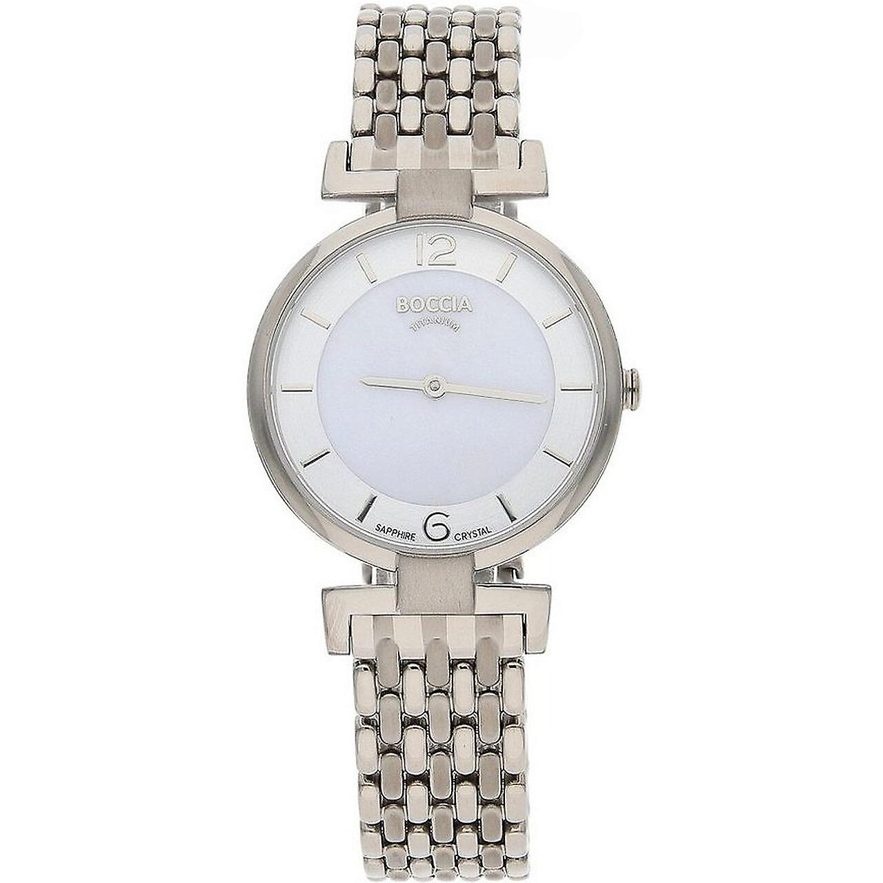 Model: Ladies Watch Boccia 3238-03, Quartz, 30mm, 5ATM. Brand: Boccia. Package Weight: 0.5 kg. Movement: Quartz. Case Color: Silver. Watchband Color: Silver. Watchband Material: Titanium. Case width: 30 mm.