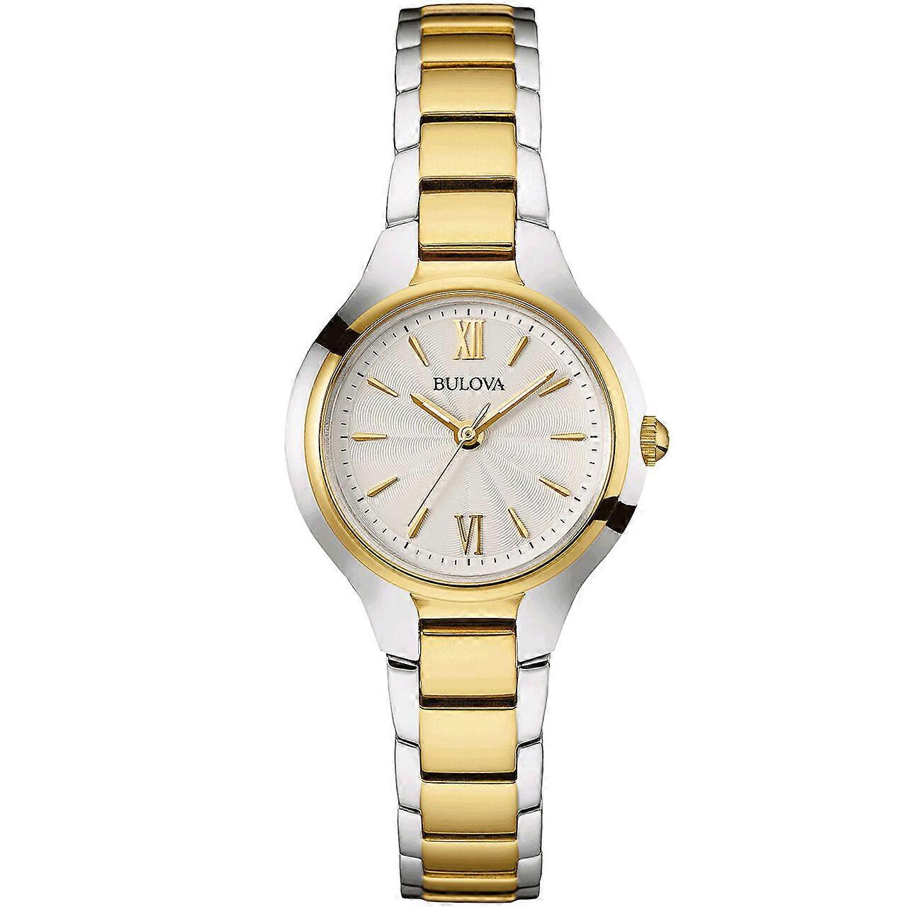 Model: Ladies Watch Bulova 98L217, Quartz, 28mm, 3ATM. Brand: Bulova. Package Weight: 0.5 kg. Movement: Quartz. Case Color: Silver. Watchband Color: Gold. Watchband Material: Steel. Case width: 28 mm.