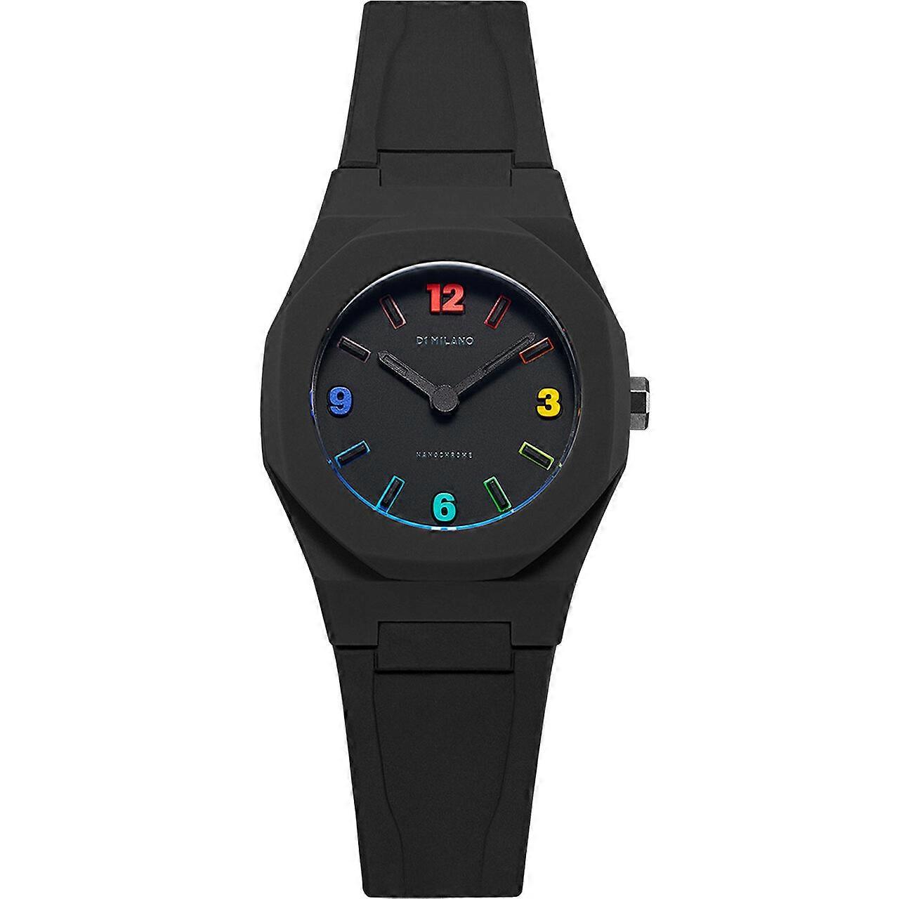 Model: Ladies Watch D1 Milano NCRJ03, Quartz, 32mm, 5ATM. Brand: D1 Milano. Package Weight: 0.5 kg. Movement: Quartz. Case Color: Black. Watchband Color: Black. Watchband Material: Silicone. Case width: 32 mm.