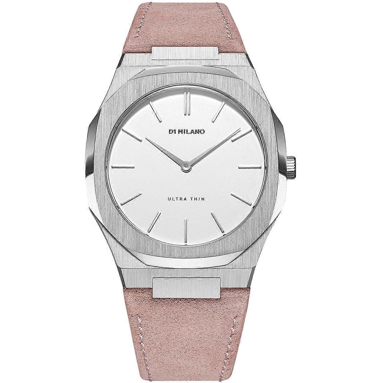 Model: Ladies Watch D1 Milano UTLL07, Quartz, 38mm, 5ATM. Brand: D1 Milano. Package Weight: 0.5 kg. Movement: Quartz. Case Color: White. Watchband Color: Pink. Watchband Material: Leather. Case width: 38 mm.