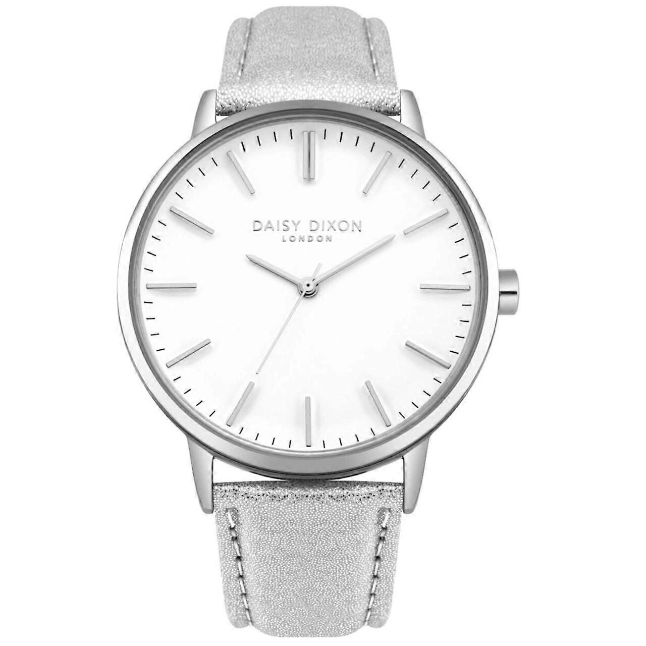Model: Ladies Watch Daisy Dixon DD061SS, Quartz, 41mm, 3ATM. Brand: Daisy Dixon. Package Weight: 0.5 Kg. Movement: Quartz. Case Color: White. Watchband Color: Silver. Watchband Material: Leather. Case width: 41 mm.