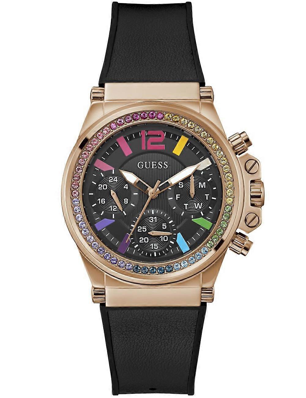 Model: Ladies Watch Guess GW0562L3, Quartz, 38mm, 5ATM. Brand: Guess. Package Weight: 0.5 kg. Movement: Quartz. Case Color: Black. Watchband Color: Black. Watchband Material: Silicone. Case width: 38 mm.