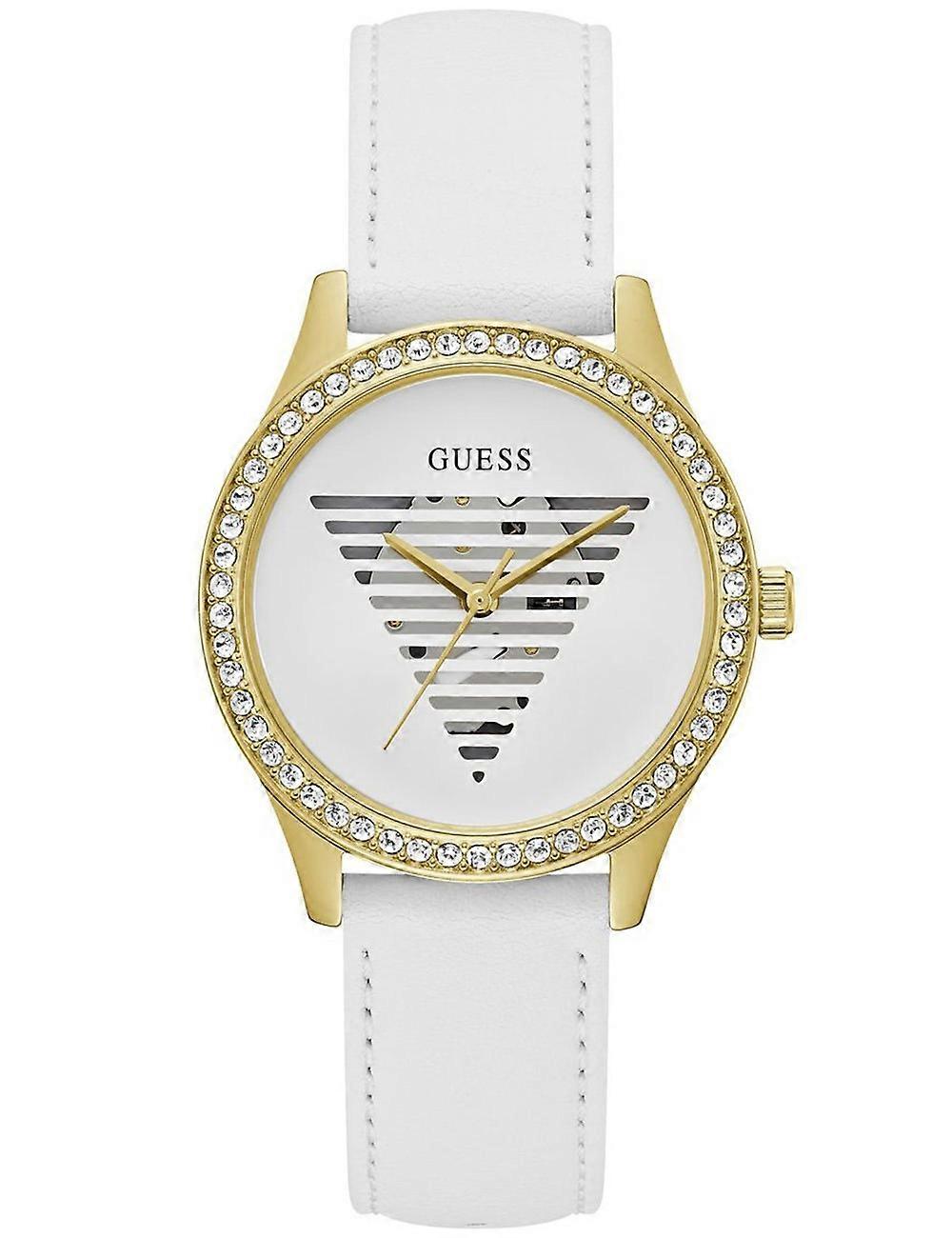 Model: Ladies Watch Guess GW0596L1, Quartz, 38mm, 5ATM. Brand: Guess. Package Weight: 0.5 kg. Movement: Quartz. Case Color: White. Watchband Color: White. Watchband Material: Leather. Case width: 38 mm.