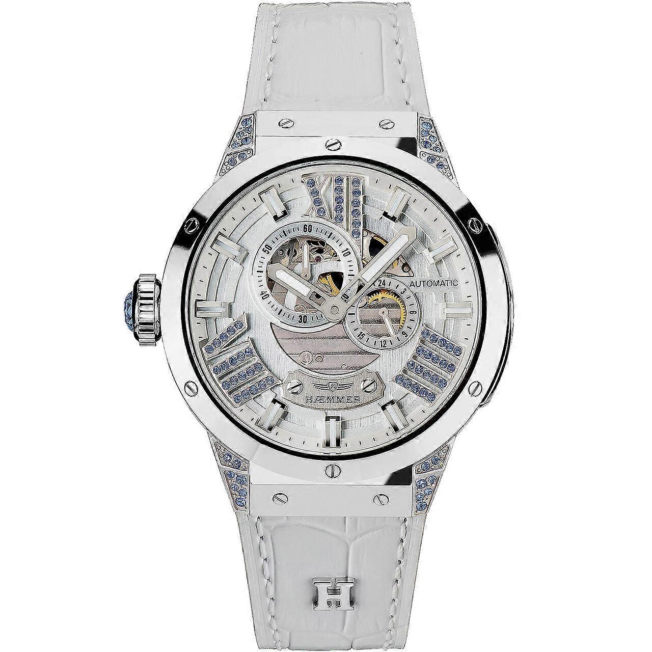 Model: Ladies Watch Haemmer GL-300-W, Automatic, 45mm, 10ATM. Brand: Haemmer. Package Weight: 0.6 Kg. Movement: Automatic. Case Color: Silver. Watchband Color: White. Watchband Material: Leather. Case width: 45 mm.