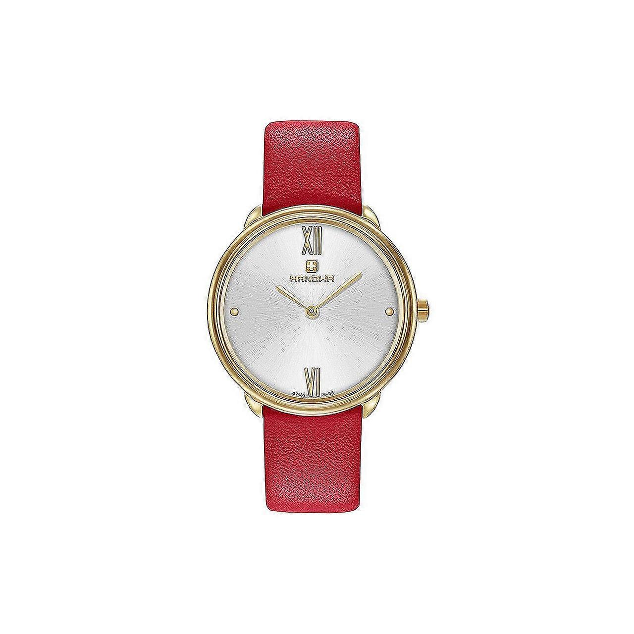 Model: Ladies Watch Hanowa 16-6072.02.001.04, Quartz, 34mm, 3ATM. Brand: Hanowa. Package Weight: 0.5 kg. Movement: Quartz. Case Color: Silver. Watchband Color: Red. Watchband Material: Leather. Case width: 34 mm.