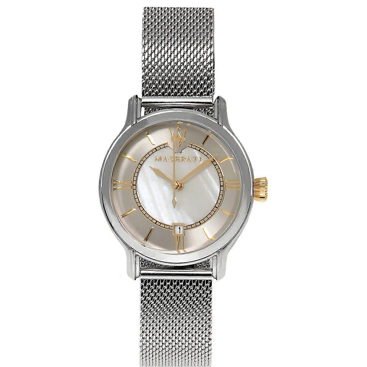 Model: Ladies Watch Maserati R8853118504, Quartz, 34mm, 10ATM. Brand: Maserati. Package Weight: 0.5 kg. Movement: Quartz. Case Color: Silver. Watchband Color: Silver. Watchband Material: Steel. Case width: 34 mm.