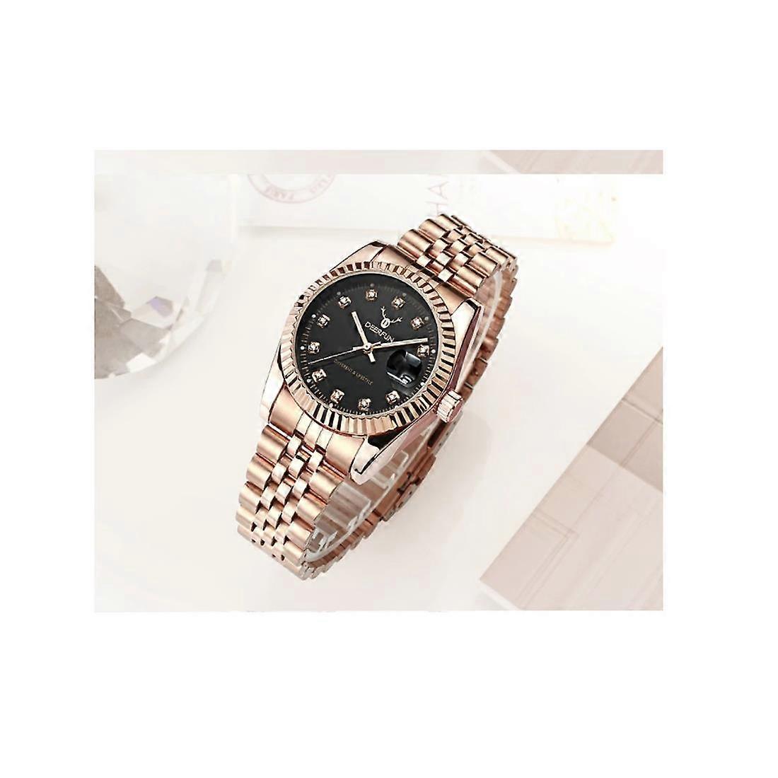 Ladies Watch Rose Gold Black Women Woman Watches Two Tone Present