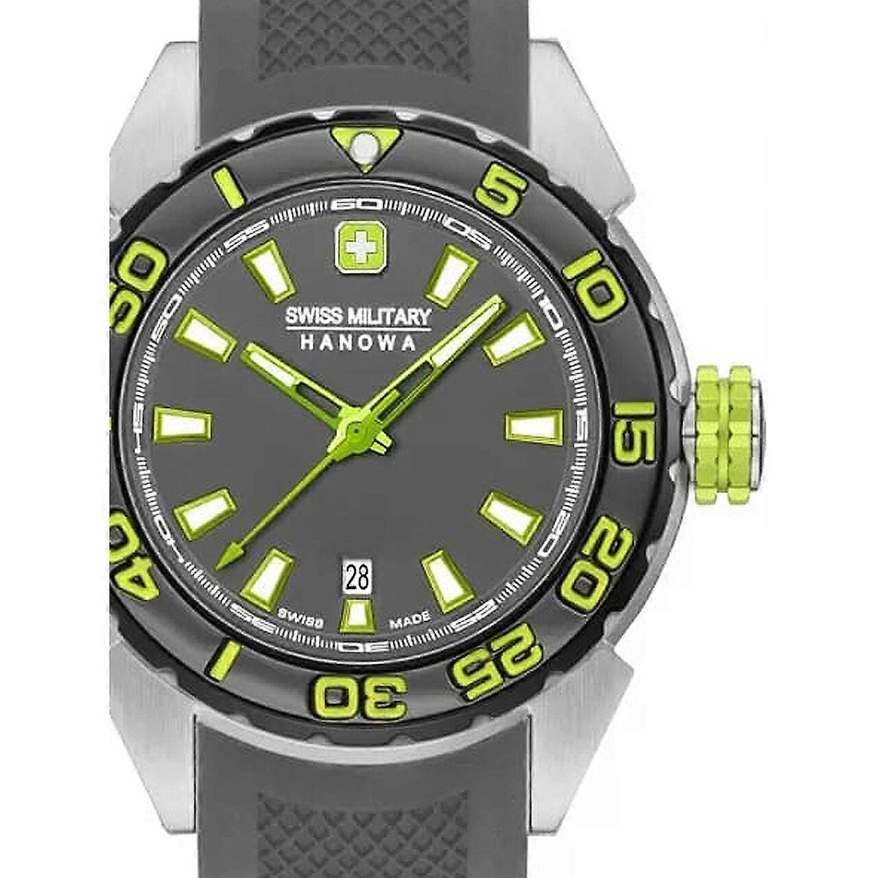 Model: Ladies Watch Swiss Military 06-6323.04.009, Quartz, 40mm, 20ATM. Brand: Swiss Military. Package Weight: 0.5 kg. Movement: Quartz. Case Color: Grey. Watchband Color: Grey. Watchband Material: Silicone. Case width: 40 mm.