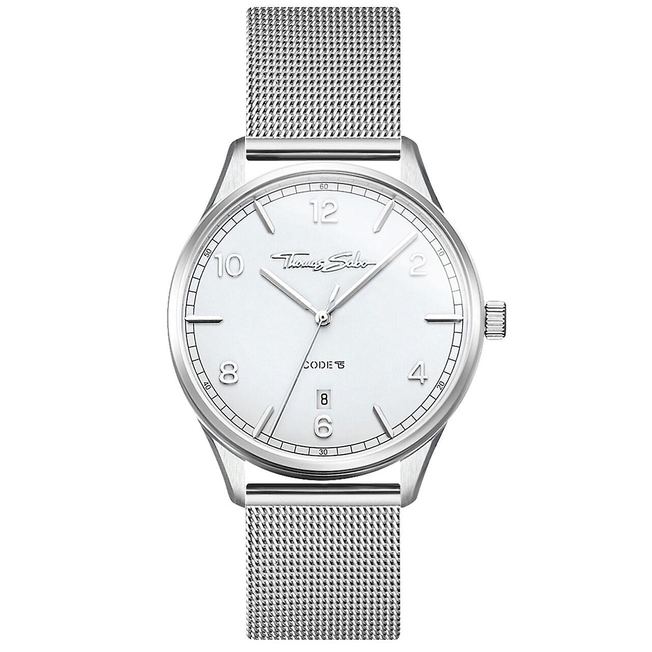 Model: Ladies Watch Thomas Sabo WA0360-201-202, Quartz, 36mm, 3ATM. Brand: Thomas Sabo. Package Weight: 0.5 Kg. Movement: Quartz. Case Color: White. Watchband Color: Silver. Watchband Material: Steel. Case width: 36 mm.