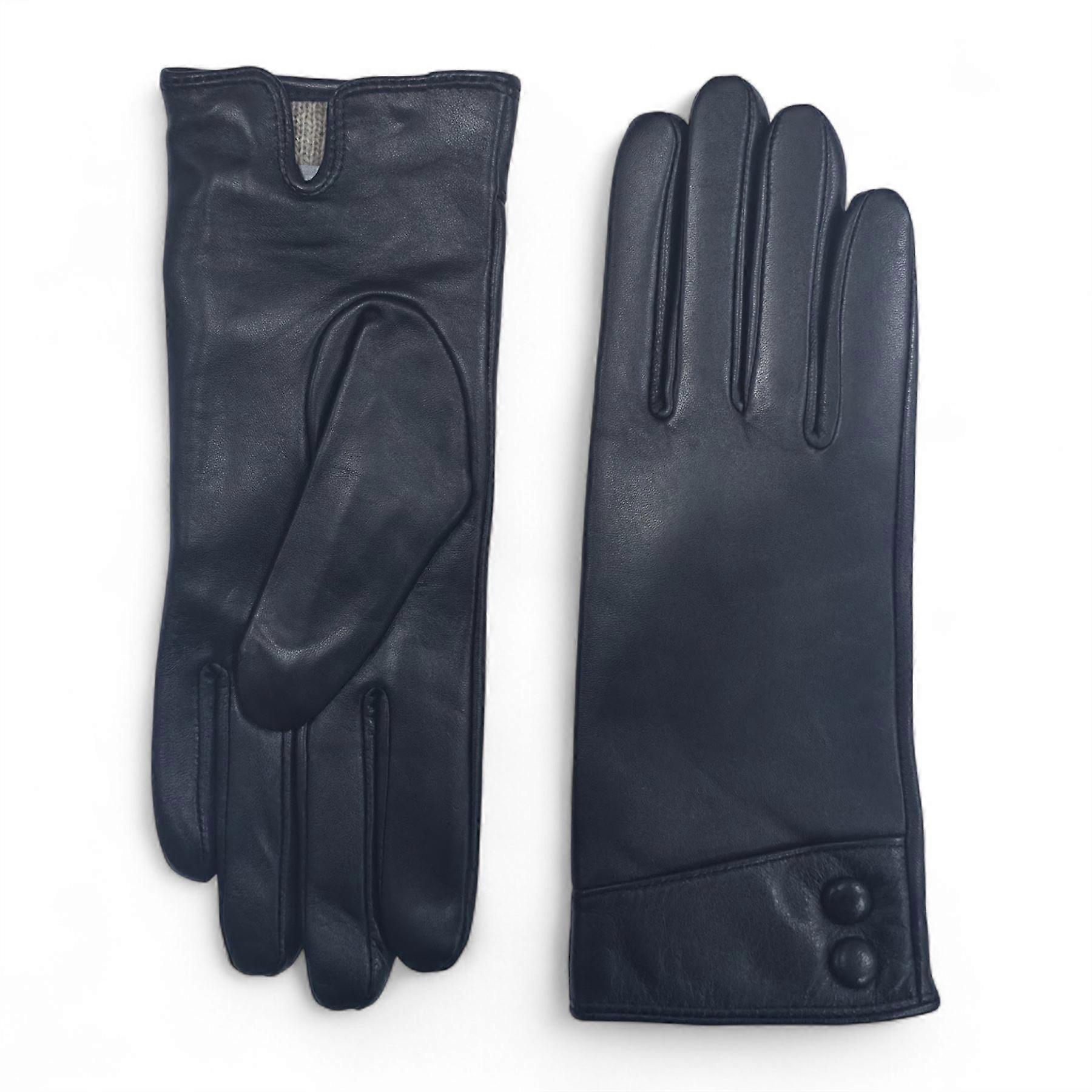 Ladies Womens Black Italian Leather Soft Wool Lining Winter Button Design Driving Gloves