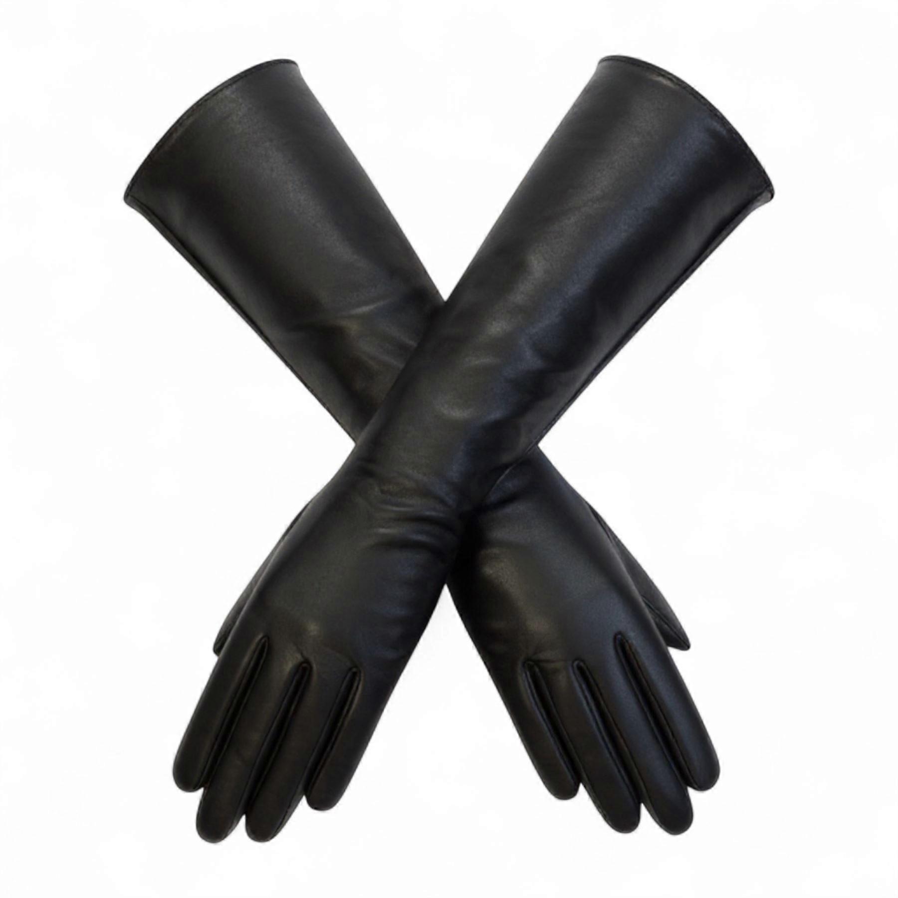 Ladies Womens Long Black Italian Leather Soft Wool Lining Winter Driving Gloves