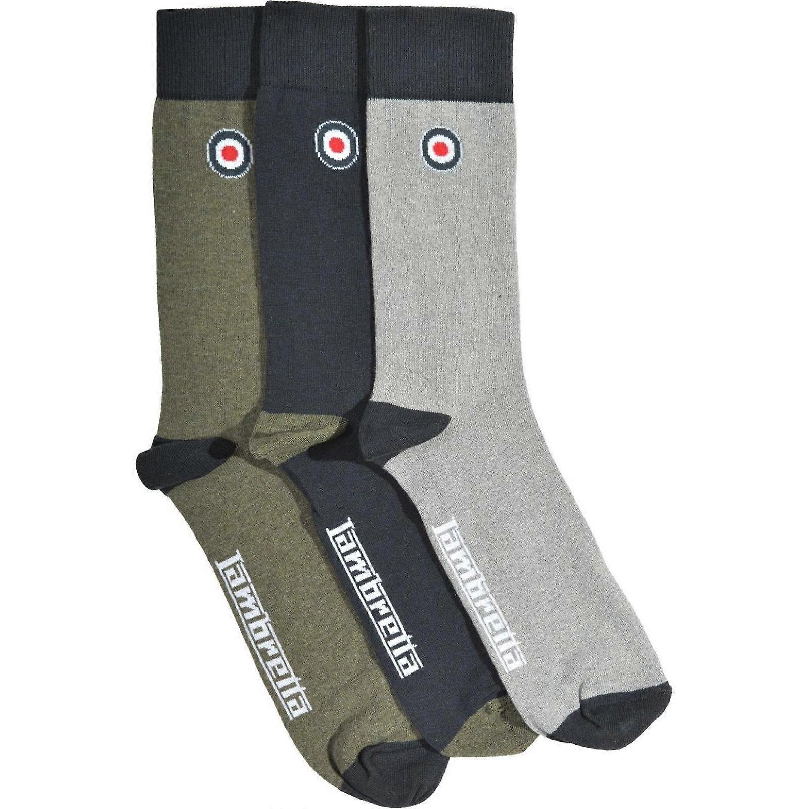 Lambretta Mens 3 Pack Crew Socks - Grey/Navy/Khaki - OS