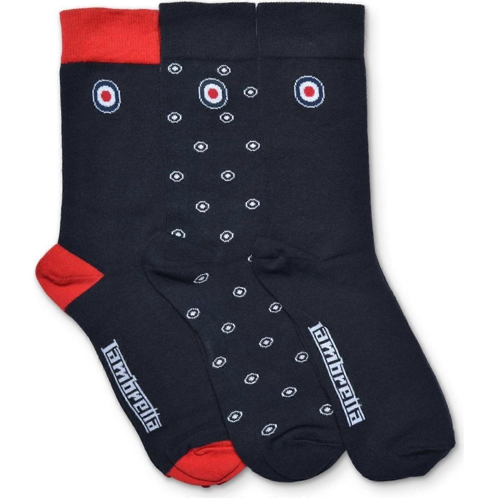 Lambretta Mens 3 Pack Target Crew Socks - Navy/Red/White - OS