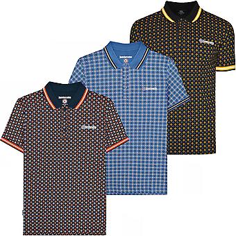 Lambretta Mens Geometric Allover Print Short Sleeve Collared Polo Shirt Top Tee