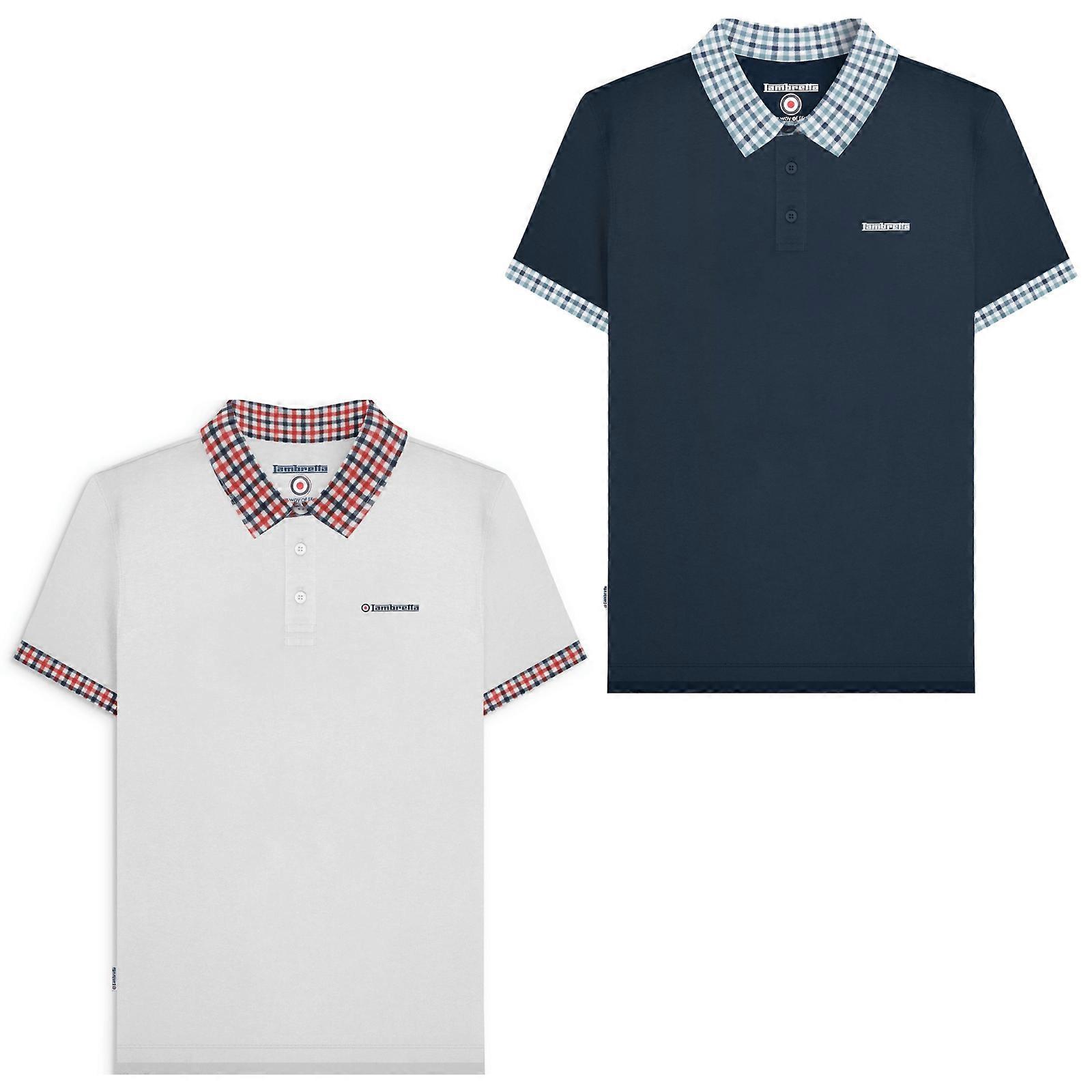 Lambretta Mens Gingham Collar Short Sleeve Polo Shirt