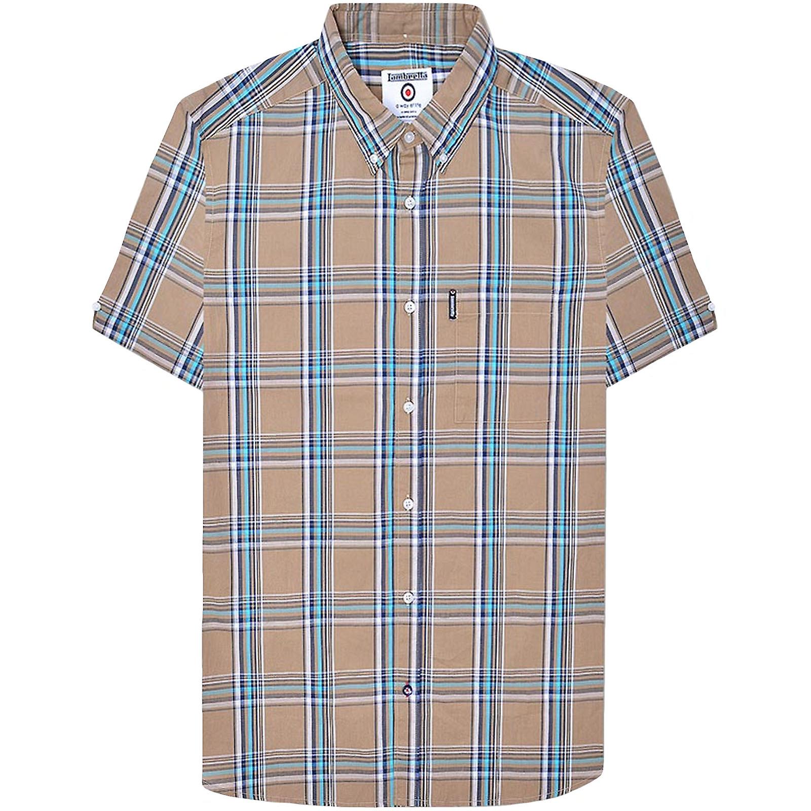 Lambretta Mens Short Sleeve Button Front Cotton Check Shirt