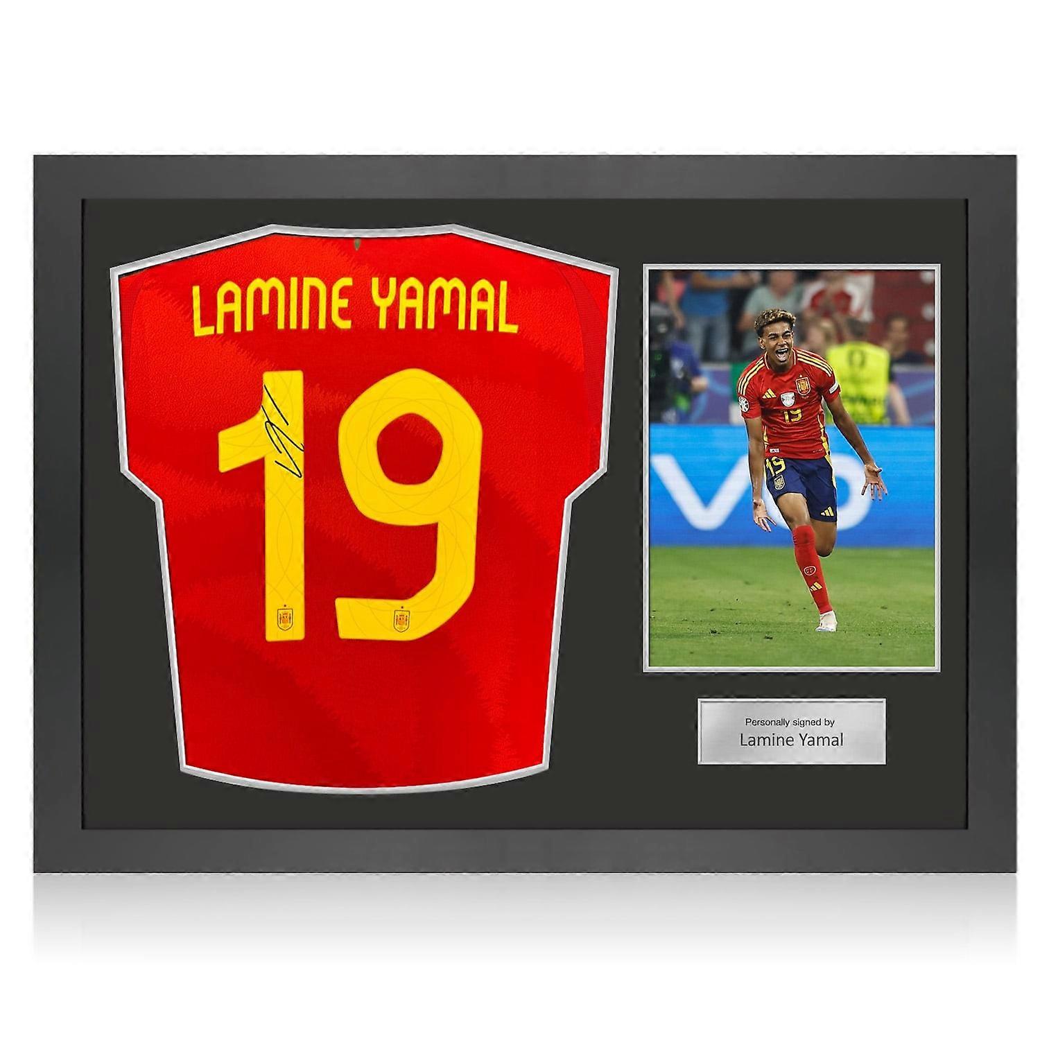 Lamine Yamal Signed Spain Home Football Shirt 2024. Icon Frame